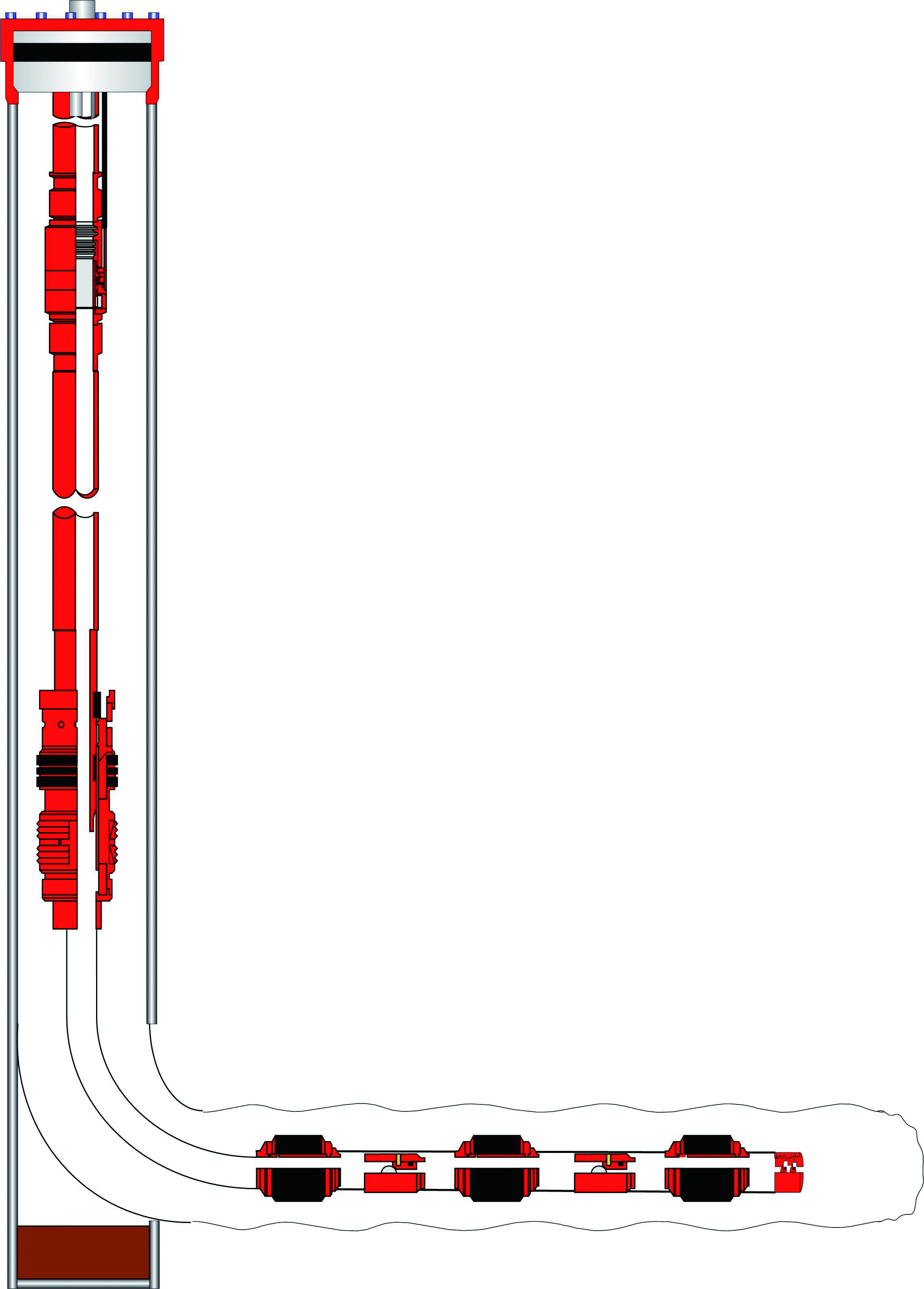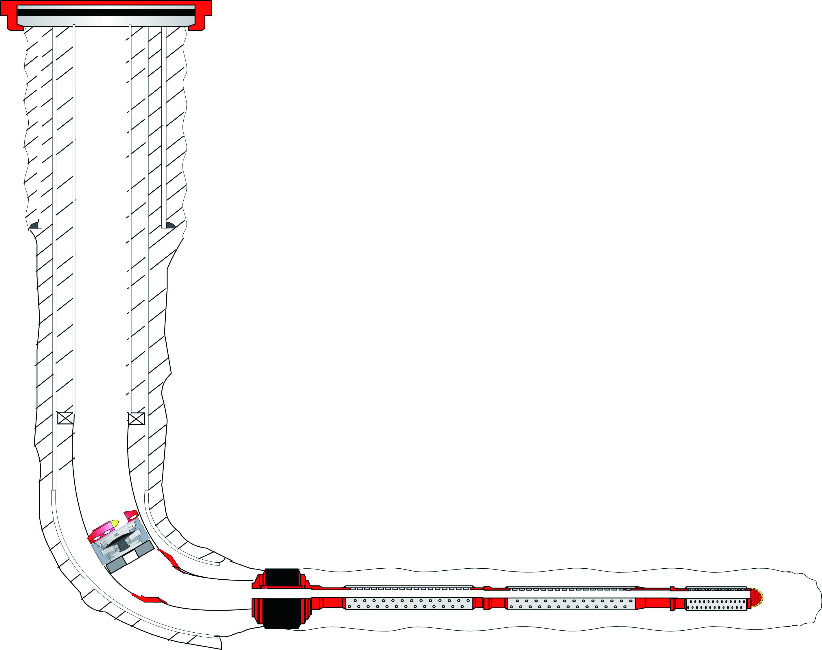 挑战:开窗侧钻完井;水平段上部有一水层,防止水窜到水平段污染产层,需要间隔固井;保障管柱的大通径。