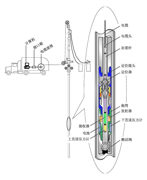 利用地层测试组合工艺,完成射孔、排液、测试、酸压等系统作业,并通过测试工具携带的压力计记录井下压力、温度的变化,从而直接取得或通过油藏工程计算求得地层渗流属性参数,达到评价油藏的目的。