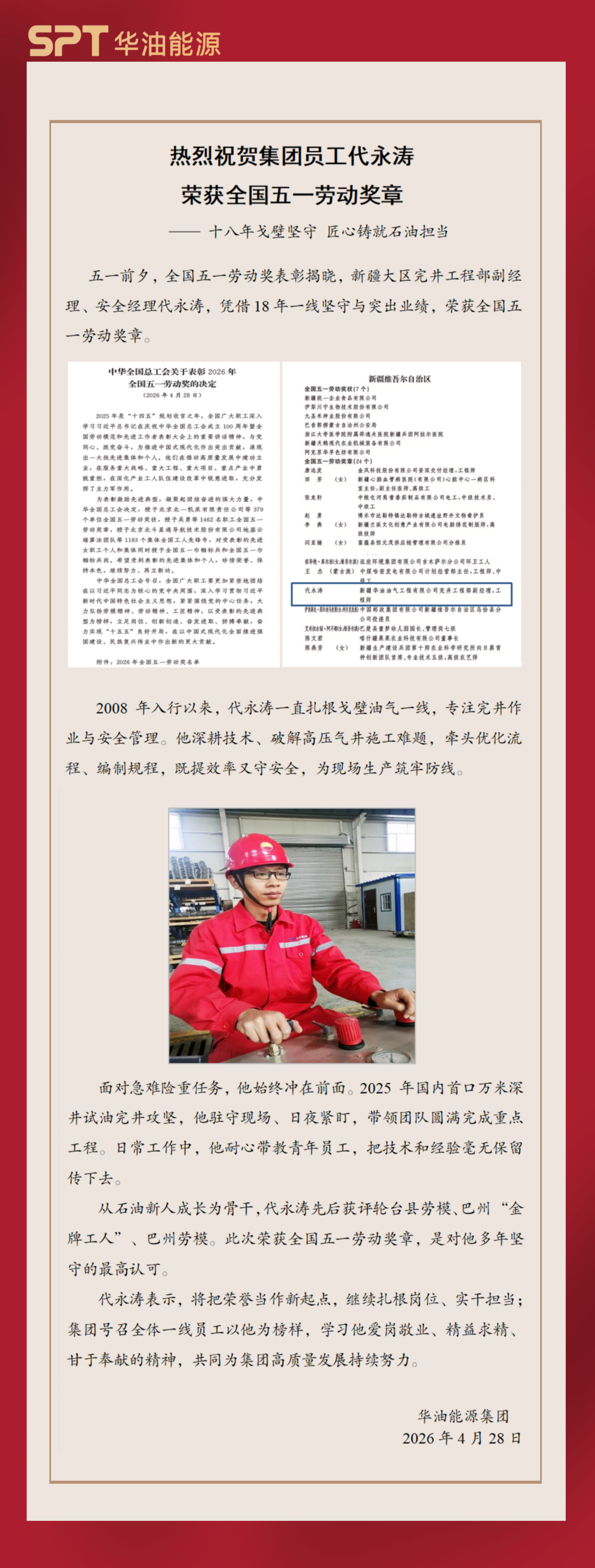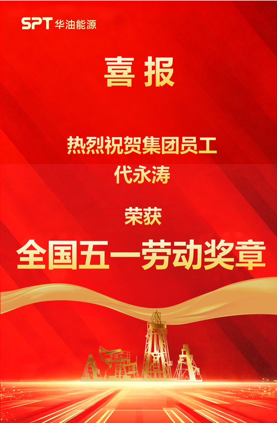 热烈祝贺集团员工代永涛荣获全国五一劳动奖章